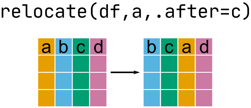 relocate(flights, carrier, flight, .before = year)# A tibble: 336,776 × 19